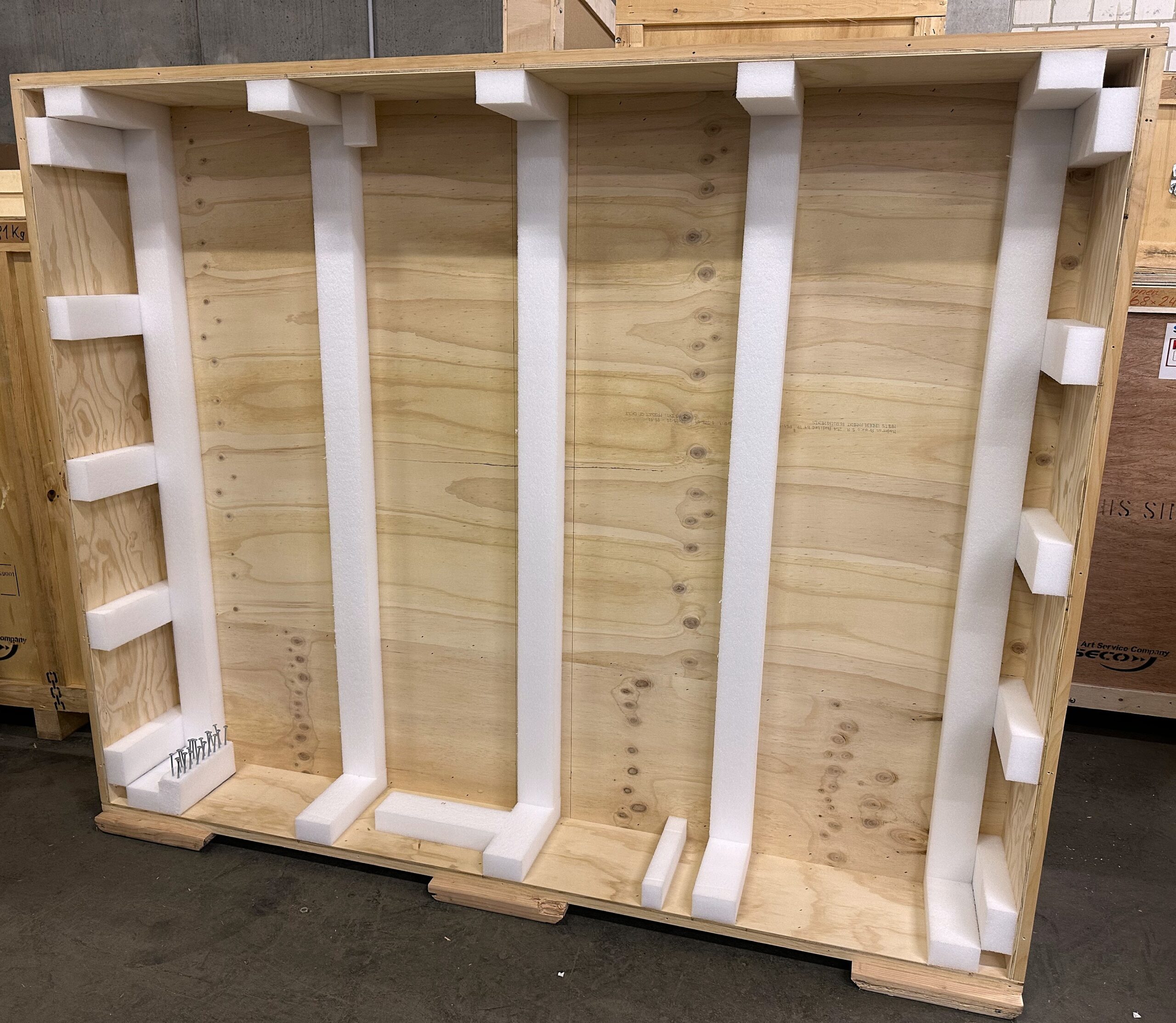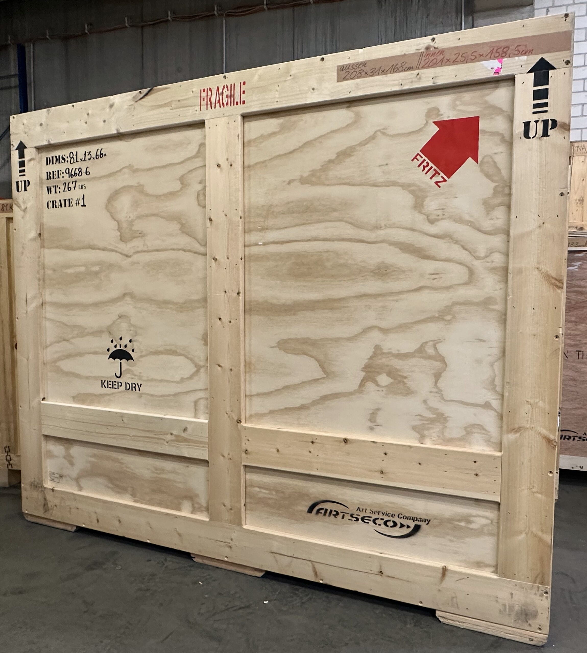 Bilderkiste, unterfahrbar, innen ohne Schaum gemessen, mit Metallgriffen