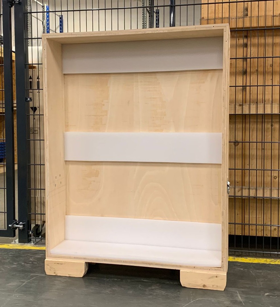 Bilderkiste, unterfahrbar, mit Metallgriffen, innen ohne Schaum gemessen